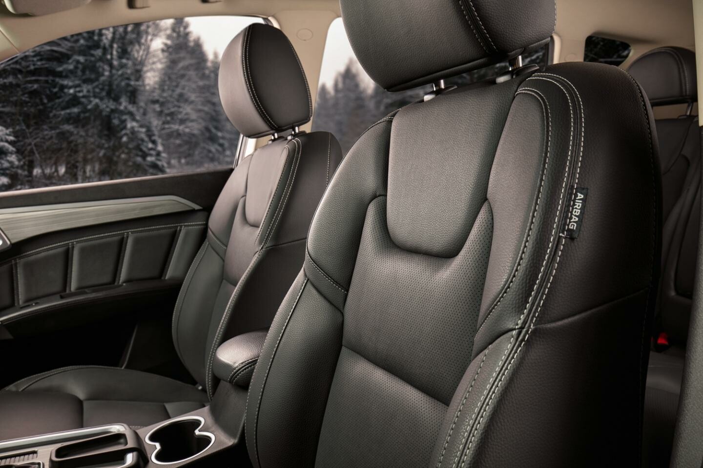 Отделка передней панели имеет мягкий материал, который приятен на ощупь. Центральная часть на передней панели отдана большому 9-дюймовому сенсорному экрану мультимедийной системе и климатической установке, а также другим управляющим кнопкам. Разумеется, присутствуют и центральные дефлекторы, которые расположились по бокам экрана.